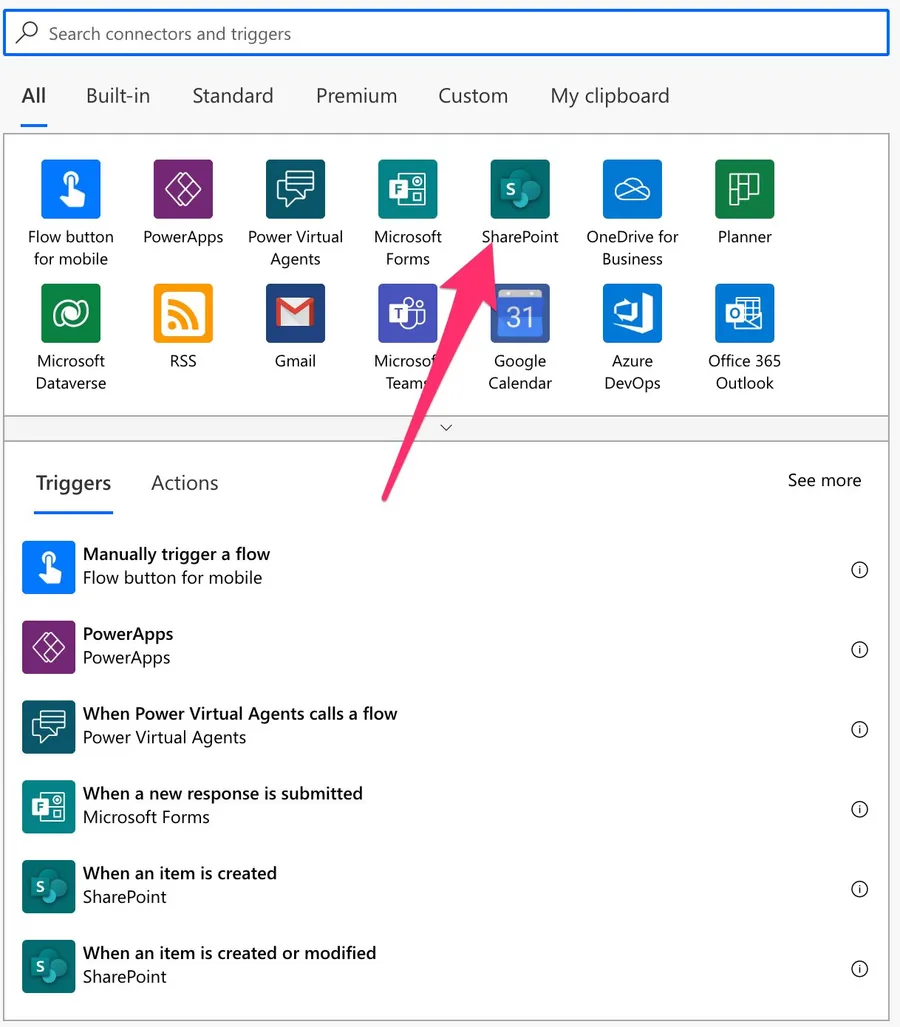 Power Automate tends to save the most common triggers on the main screen, so check there before going through the full hierarchy. Also, you can use the search to find it quickly. [/su_panel]
