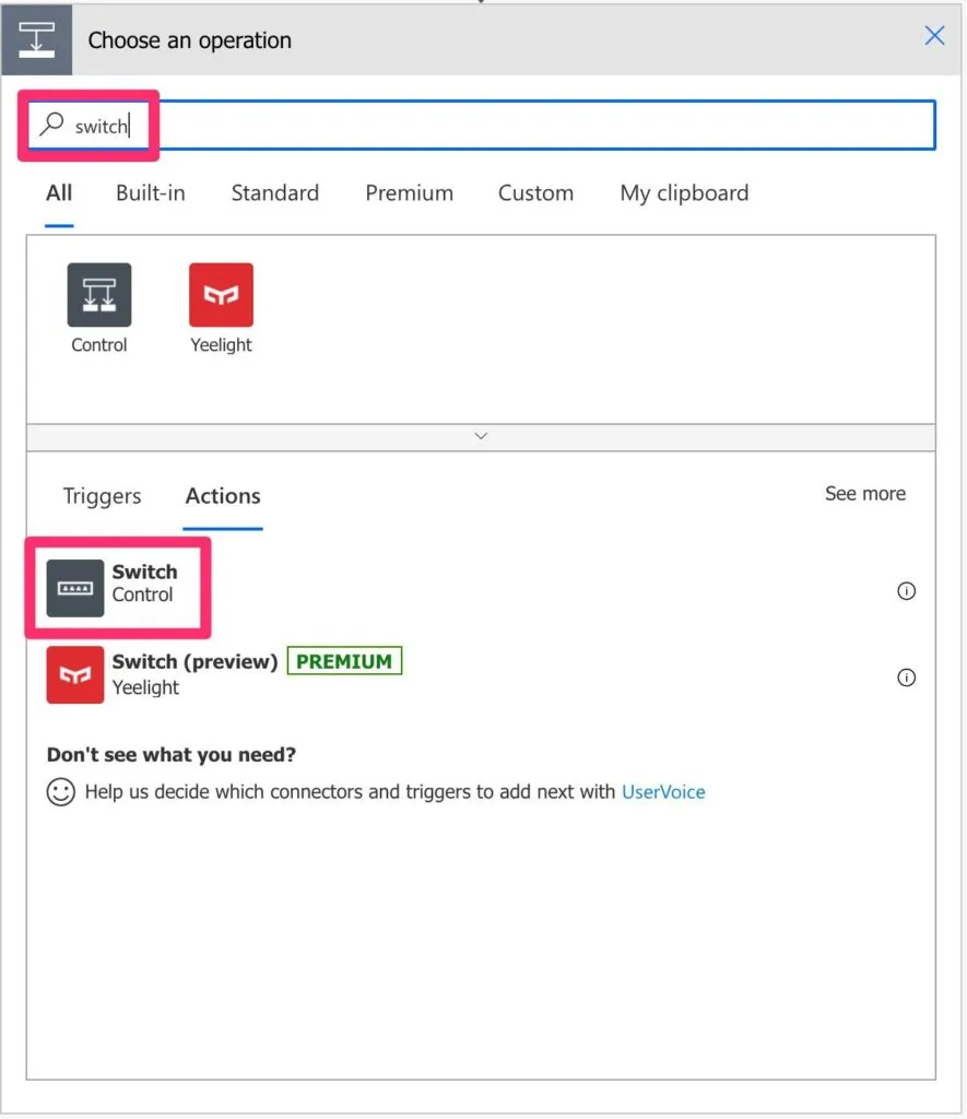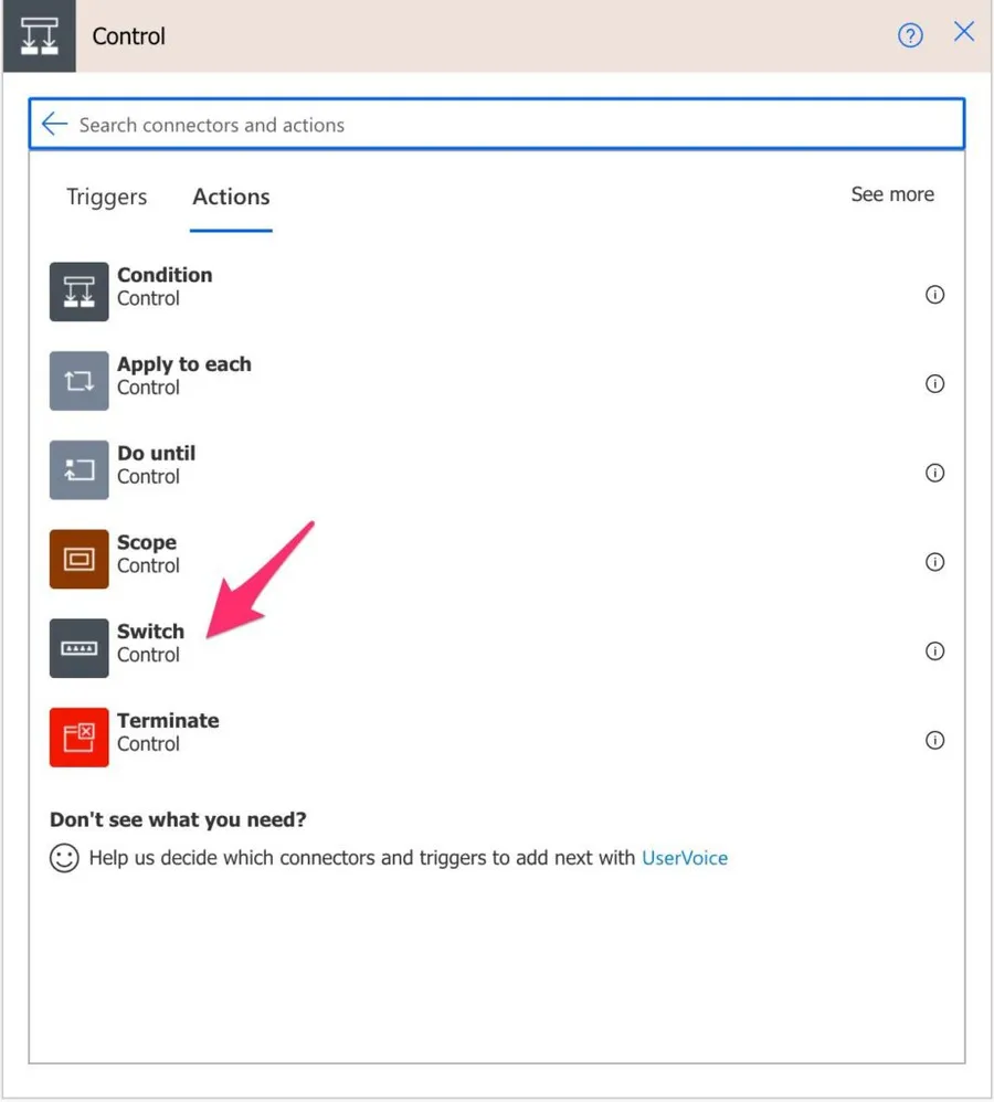 Then select the Switch Action.
