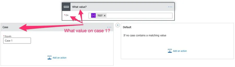 If you have a lot of values, please break them down into multiple actions. I’ve seen people using the default as the “bucket” where all the other values are sent so that you can provide another “Switch Action” to parse them. This makes for a very hard-to-debug Flow and should be avoided at all costs.