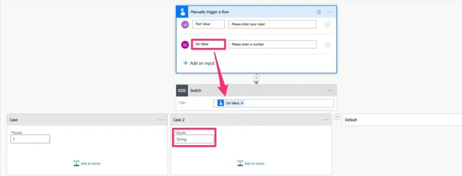 Flow does a nice job of keeping things consistent. If you define a variable of the type int and have a case with “case 1”, Flow will return an error when you try to save. Even with this safeguard, you should always make sure that you use the same types in all cases.
