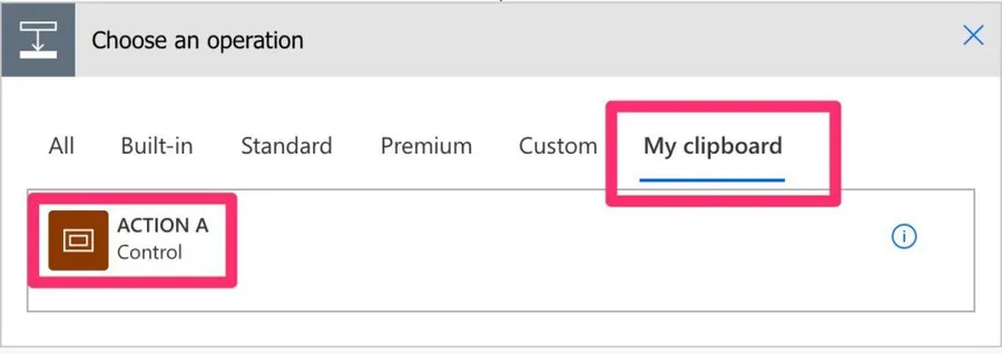 Copy the code and check again “My Clipboard” when you add a new action. You’ll get this: