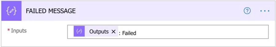 The compose action will contain the error message that you want to send when something goes wrong. I added the prefix of the previous compose action to get the name plus the error message.