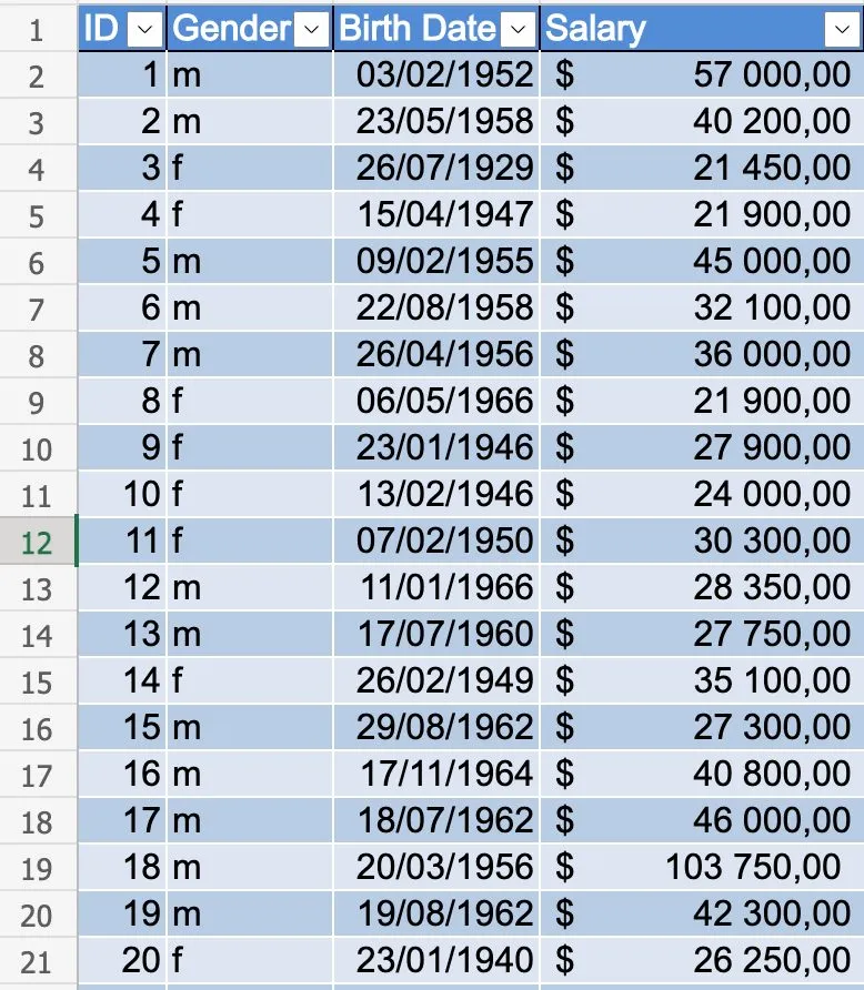 Let’s look at a test file with anonymous employee information.