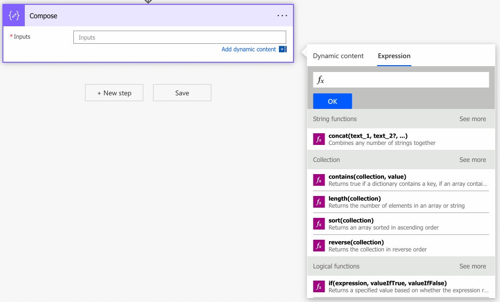 You can find the function in every action where a formula is supported. For example, let’s look at a “Compose” action: