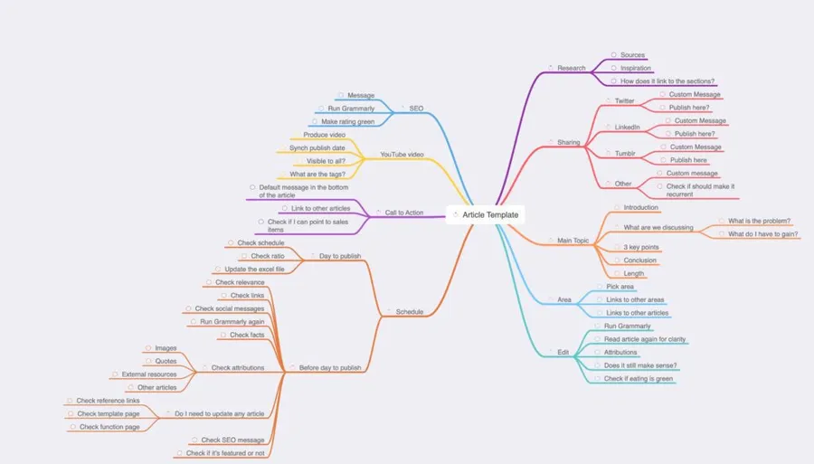To demonstrate how I use MindNode, I use the mind map to write articles for this site; think about the tasks that need to be done, not forget anything.