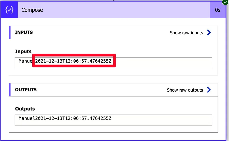 Although Power Automate will convert the types and appends them, we should fully control how the data is converted. For example, think of a date using the “utcNow function.”