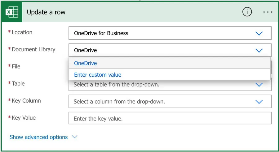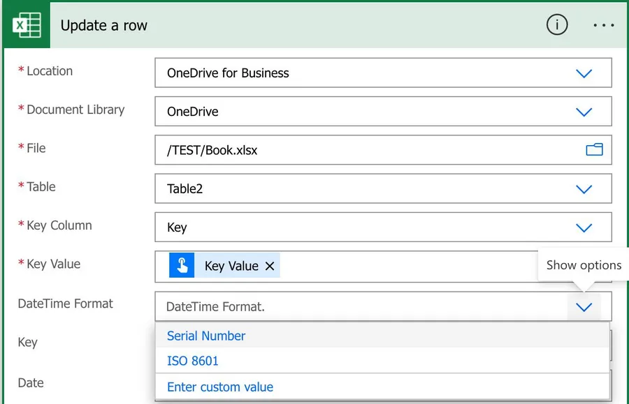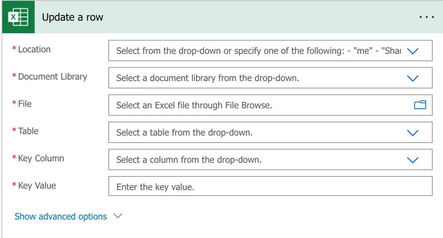 Since you're updating a row, you need to identify the row that we want to edit. To do that, we need to define a "key column" that has a unique identifier for each row. This way, you can tell Power Automate and Excel to kook at column X and find the record Y (more about this below) to update.