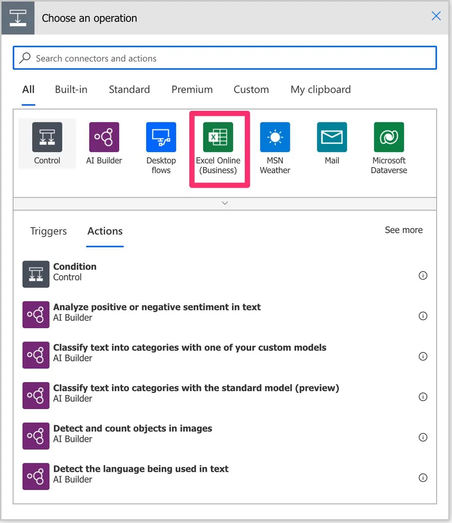 Power Automate tends to save the most common actions in the main screen, so check there before going trough the full hierarchy. Also you can use the search to quickly find it. [/su_panel]