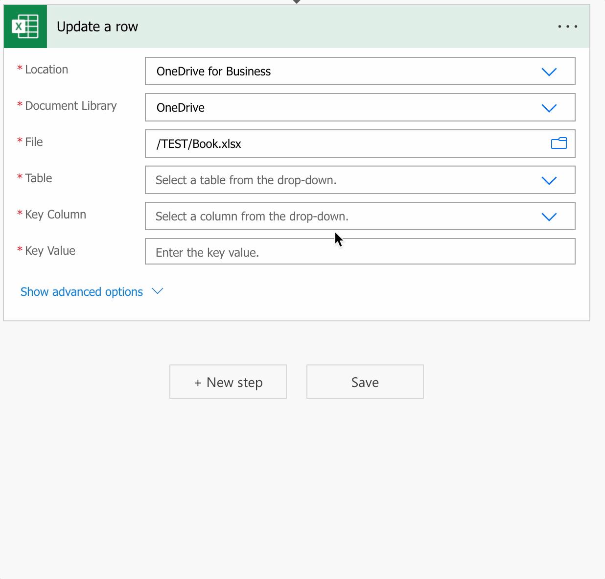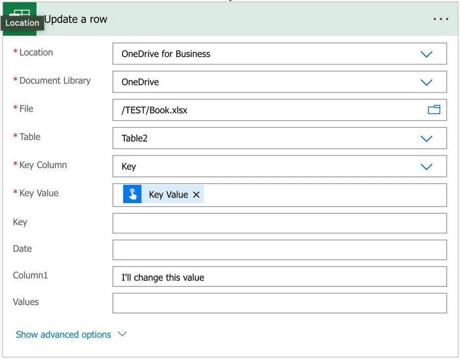 Now that everything is configured, we only need to tell Power Automate what row we want to update. Any value is acceptable here as long as it's unique, although I recommend having sequential numbers or random strings.