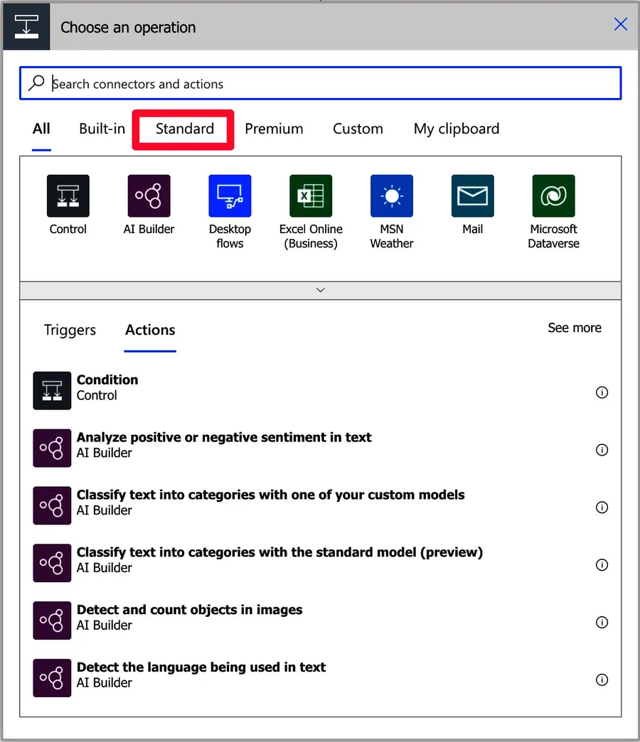 Power Automate tends to save the most common actions in the main screen, so check there before going trough the full hierarchy. Also you can use the search to quickly find it. [/su_panel]