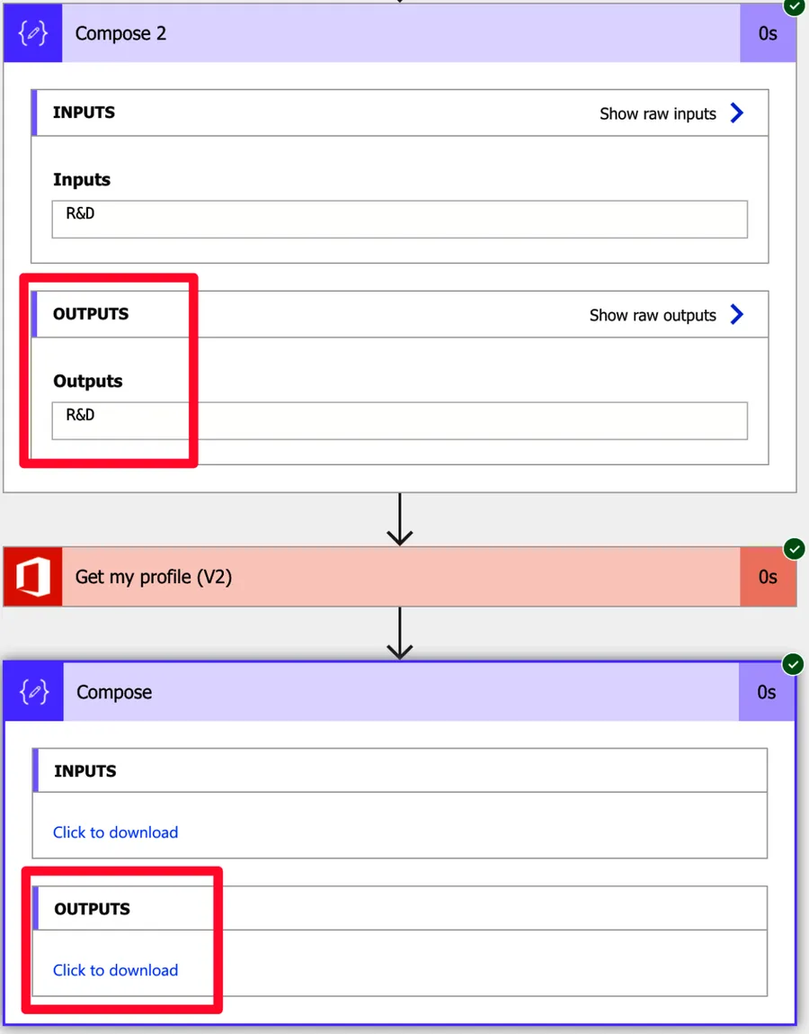 I described the issue with the selected fields where the Flow won't get the information even if it exists. To avoid this, I recommend that you always have one "get my profile" action without any limitation to ensure that you're always getting the values for the properties. This way, you know that if there's no value, it means that someone did not fill it in. If you want to have an "extra" value, add a separate "get my profile" action to get it. By doing this, you're sure that you don't have any issues with how the action works.
