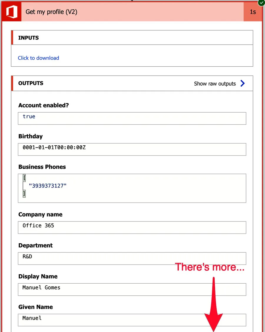 Those who don't know your profile always exist if you have an office 365 account. Depending on the diligence of your organization, your profile can be more or less completed, but there's a lot of information that you can get using the "Get my profile" action.