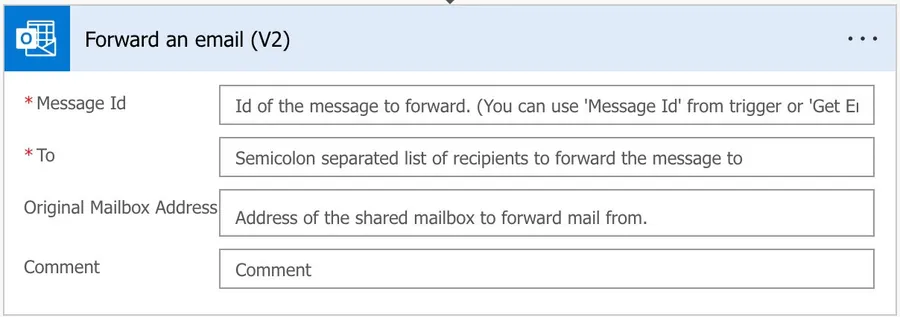 You need to have permission to access a shared mailbox before you can forward the email. You won’t be able to configure any permission in the action since they are configured centrally, so consult with your administrator if there’s something wrong. A good rule is if you can see the shared mailbox in your desktop version of Outlook, then you have permissions. This is not a limitation but generates some issues when trying to use the action.