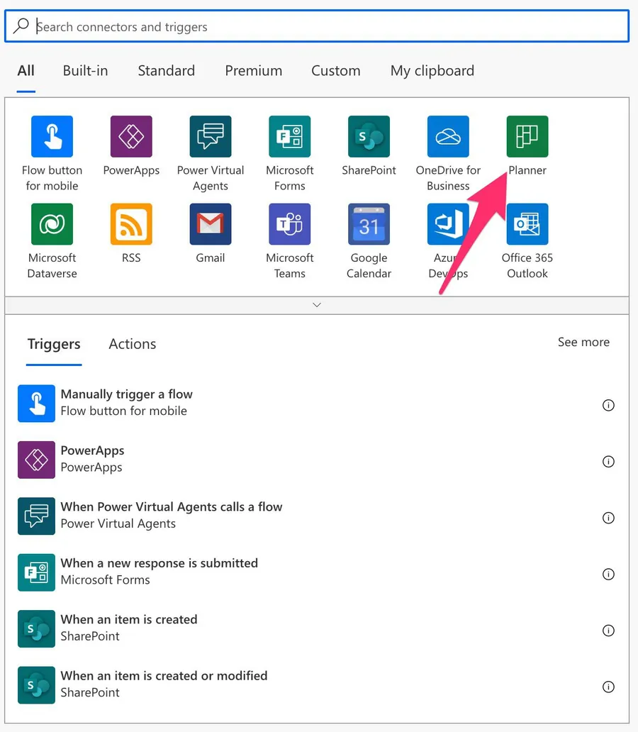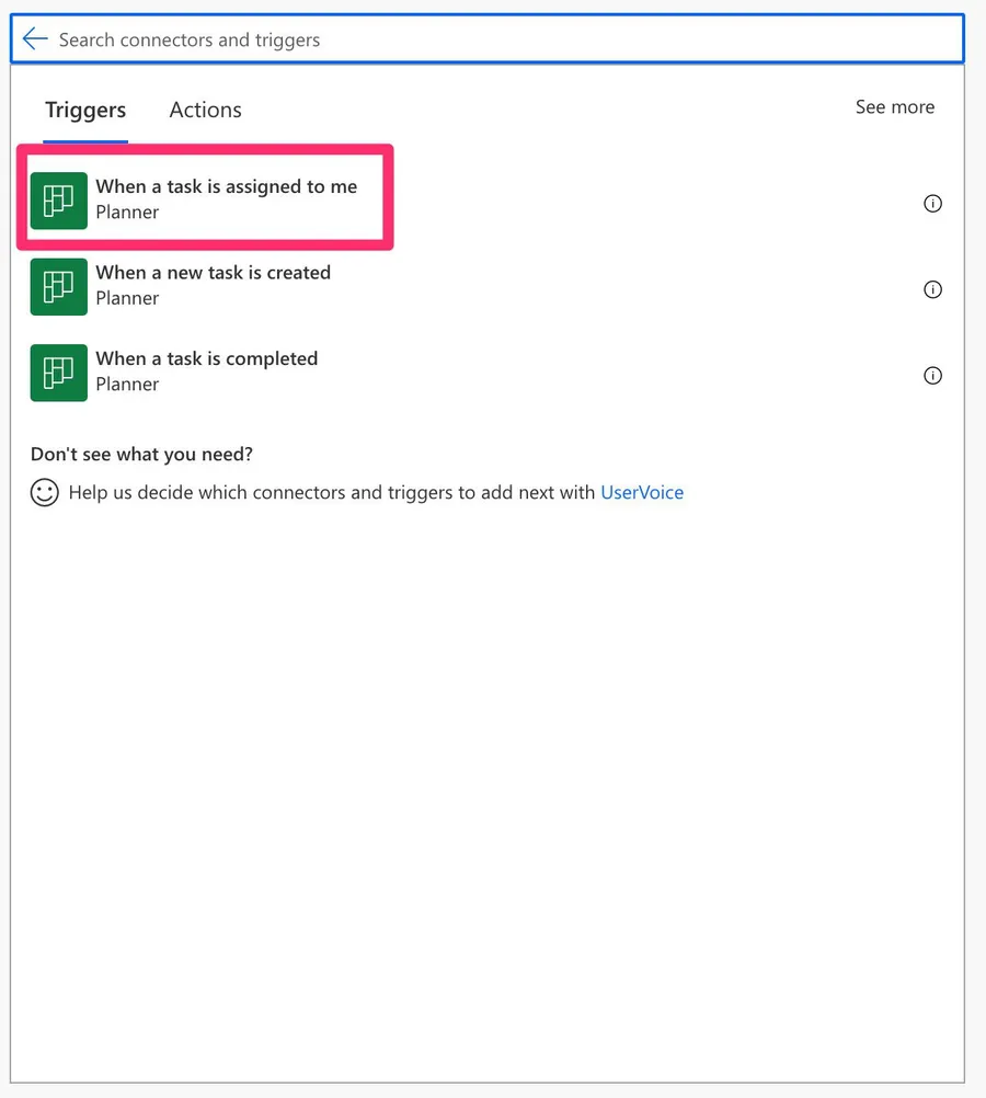 To find it, you can search for “When a task is assigned to me” trigger or select “Planner.”